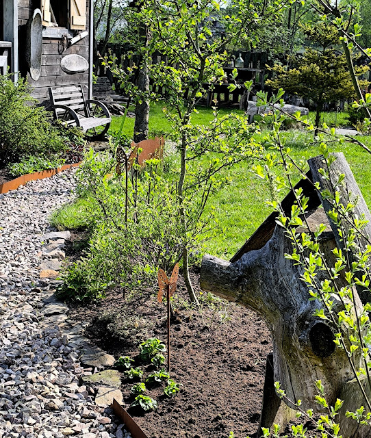 Na rabatkach coraz pełniej, ale najbardziej zachwycają teraz drzewa, a właściwie czeremchy. Biało po drodze, biało i u mnie.